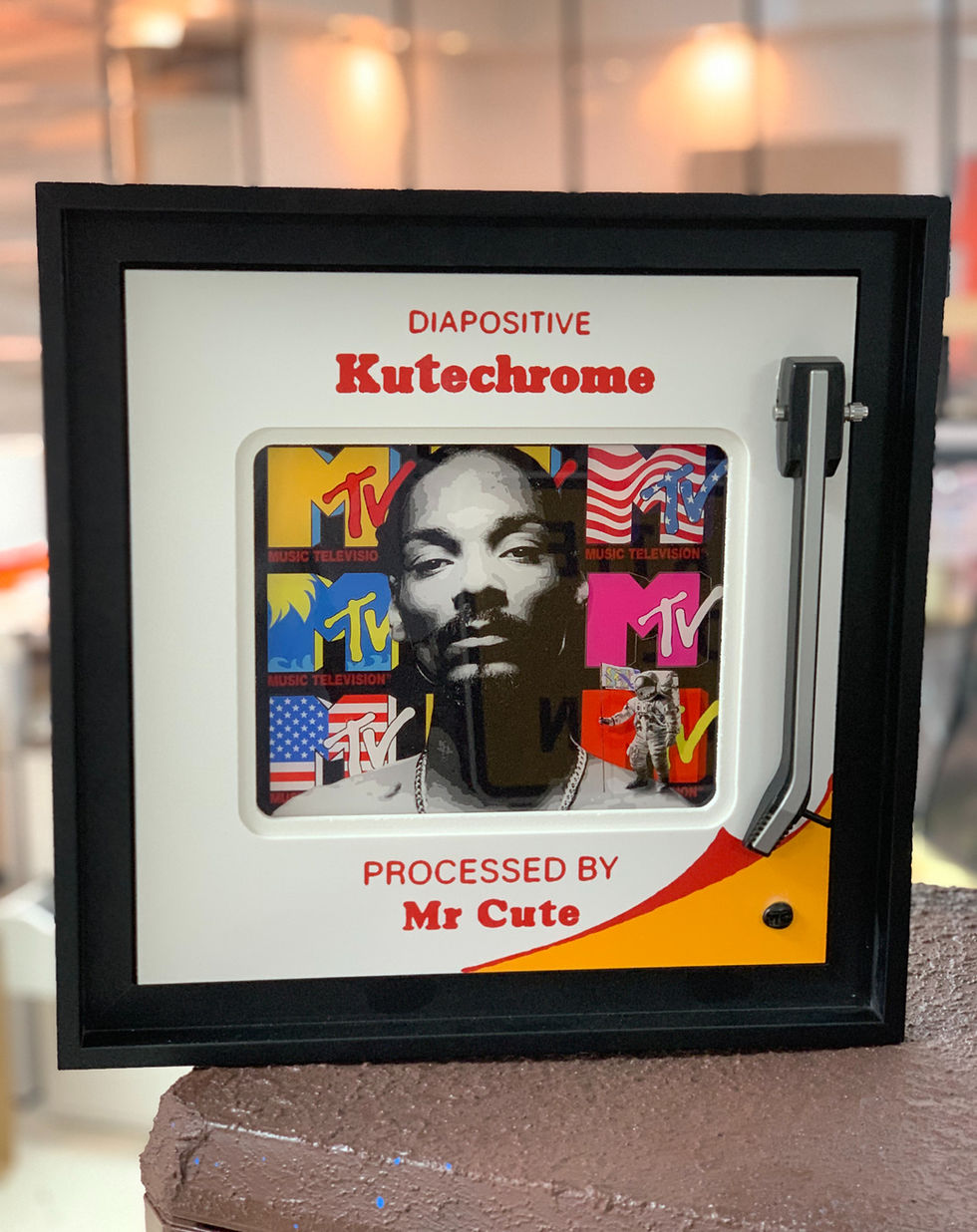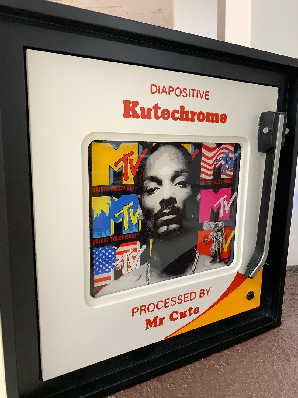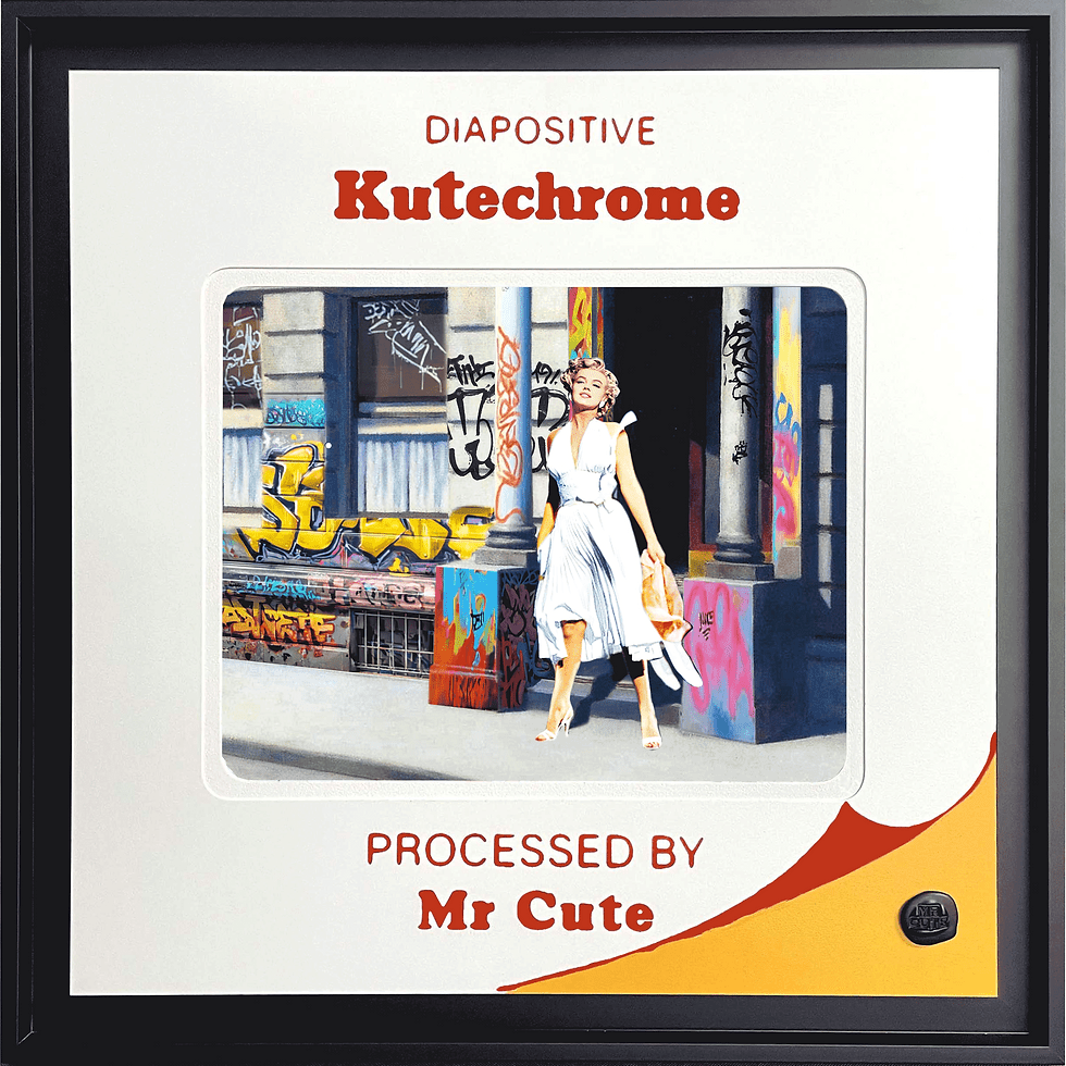 Avec leur collection de diapositives géantes qui révèlent les émotions de notre enfance et qui rappellent les madeleines de Proust de chacun chacune, les frères revisitent des figures iconiques qui ont marqué de manière indélébile toute une génération. Ils contemplent ce que l’art de chaque époque peut révéler sur notre rapport au temps qui passe. Ce même processus alimente leurs uchronies qui font réfléchir, combinant la diapositives mais également la peinture à l’huile et les collages pour décrire l’union improbable de Marilyn et John ou bien la découverte de l'élection d' Obama par Rosa park etc.... Mr Cute modifie le cours de l'histoire pour imaginer ce qu'elle aurait pu être.